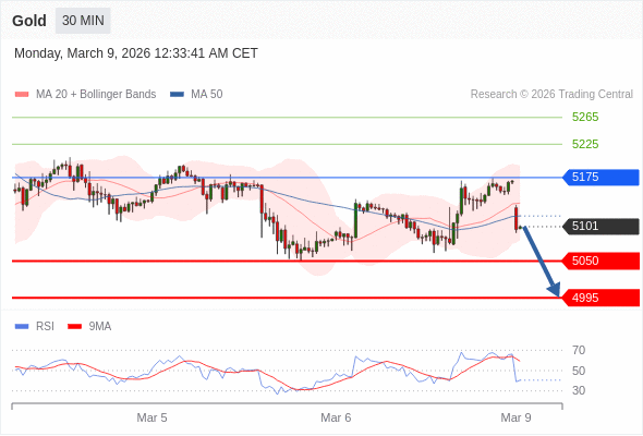 在 5175 之下,看跌,目标价位为 5050 ,然后为 4995 。