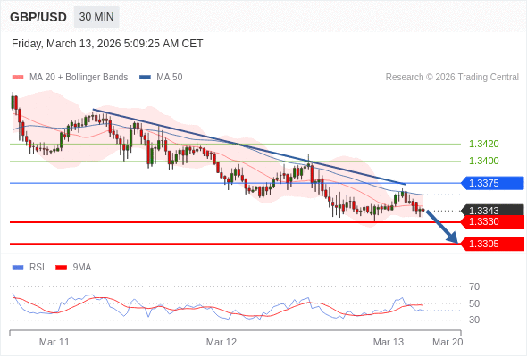 在 1.3375 之下,看跌,目标价位为 1.3330 ,然后为 1.3305 。
