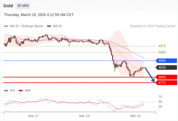 在 4895 之下,看跌,目标价位为 4805 ,然后为 4775 。