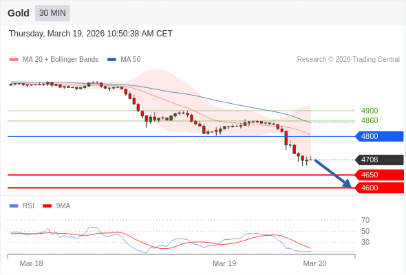 在 4800 之下,看跌,目标价位为 4650 ,然后为 4600 。