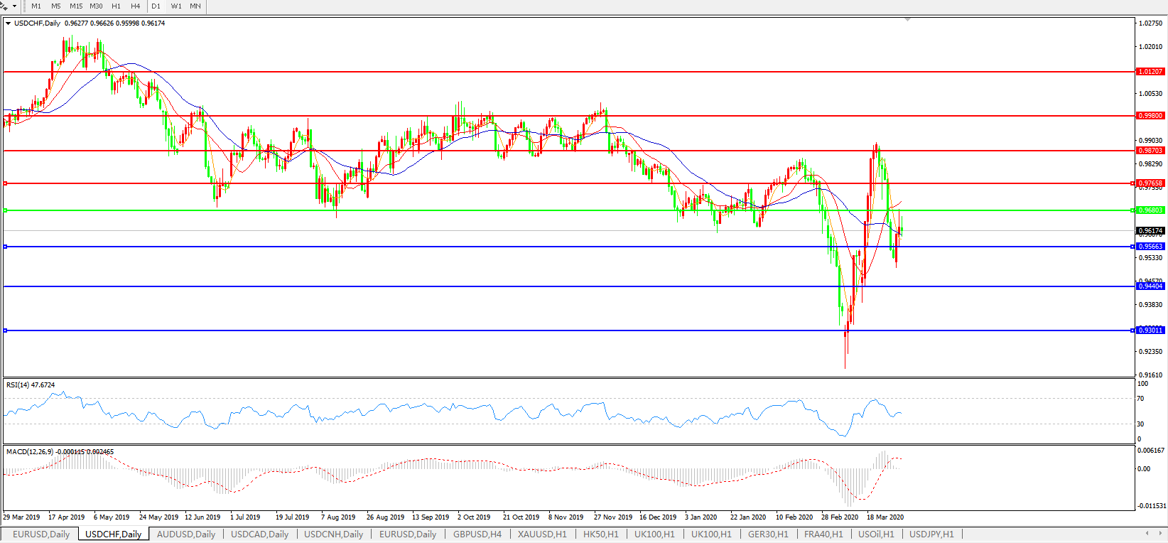 美元兑瑞郎USDCHF 日线图: