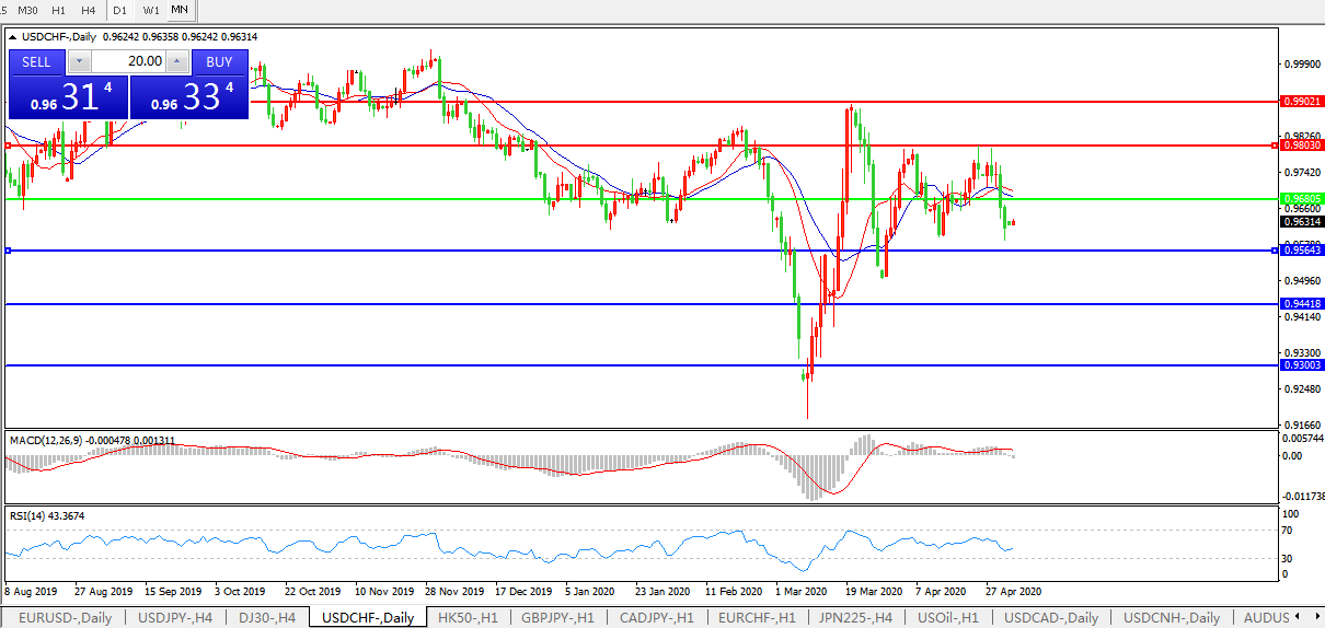美元兑瑞郎USDCHF 日线图: