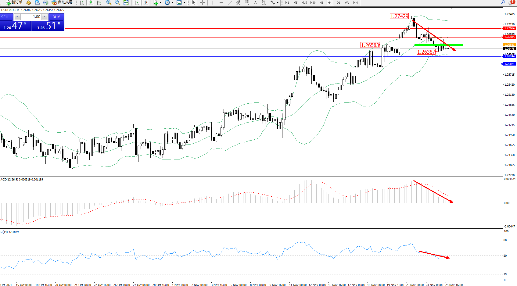 美元加元USDCAD——4小时K线图显示: