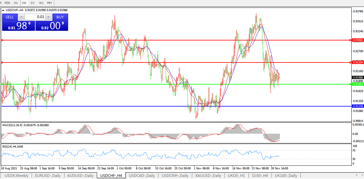 美元兑瑞郎USDCHF 4小时图:
