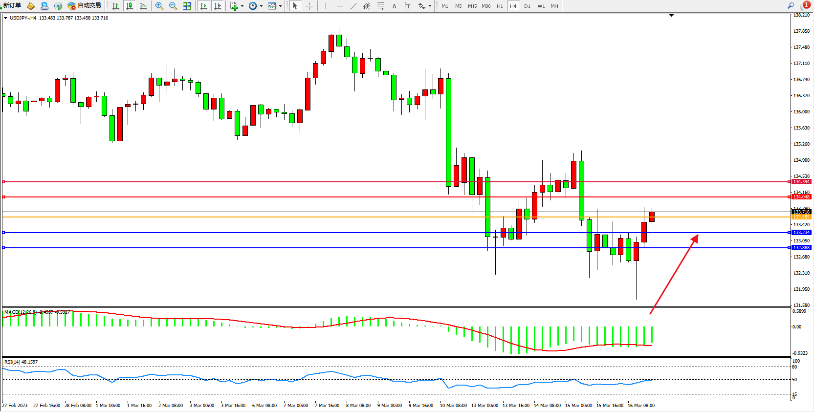 交易策略:133.585上方看涨,目标134.048 134.394