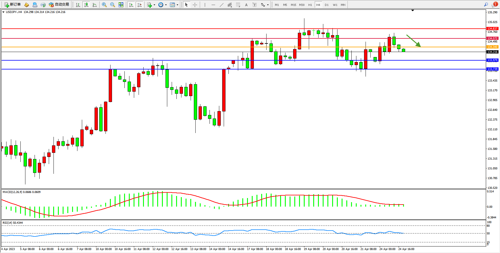 阻力位:134.572 134.837