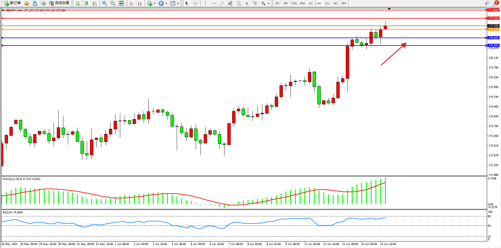 交易策略:177.130上方看涨,目标177.523 177.810