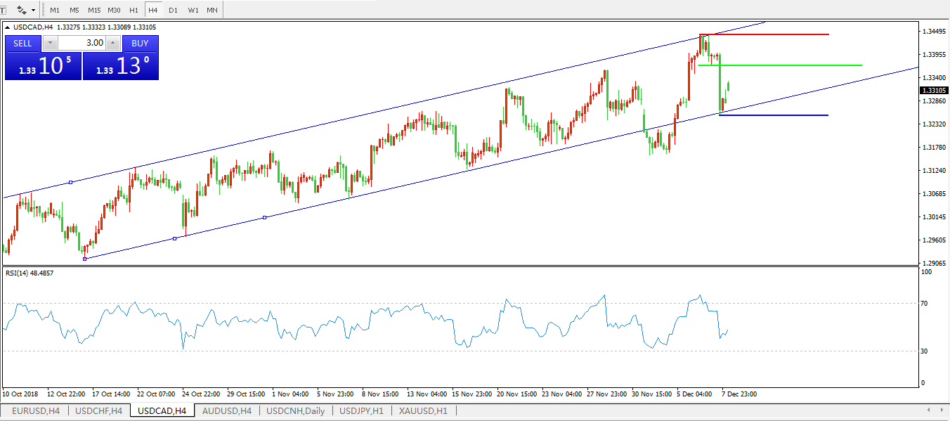 美元兑加元USDCAD4小时图